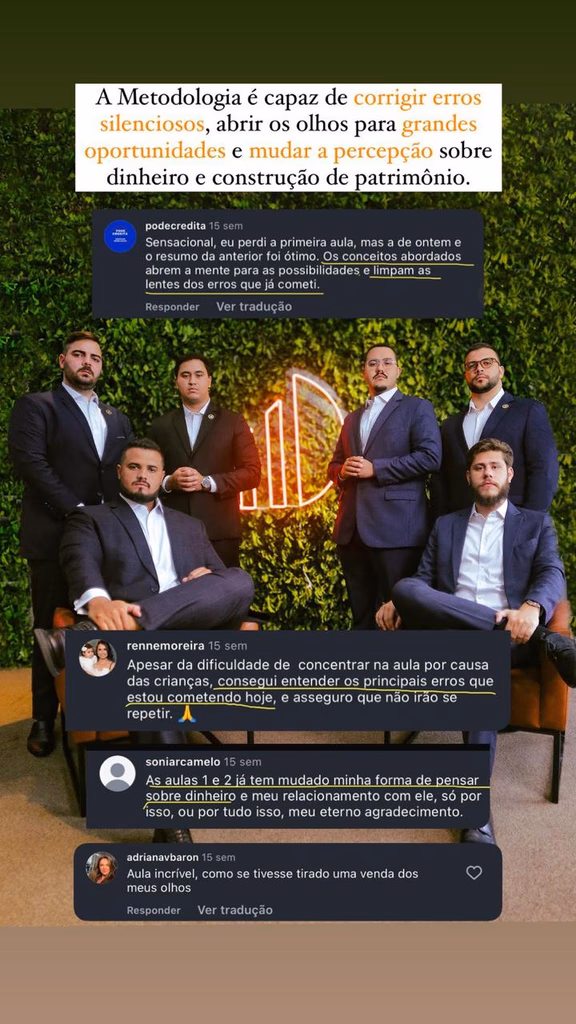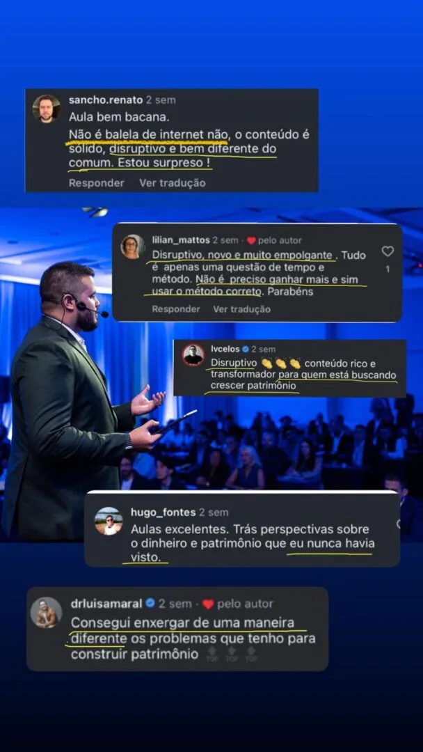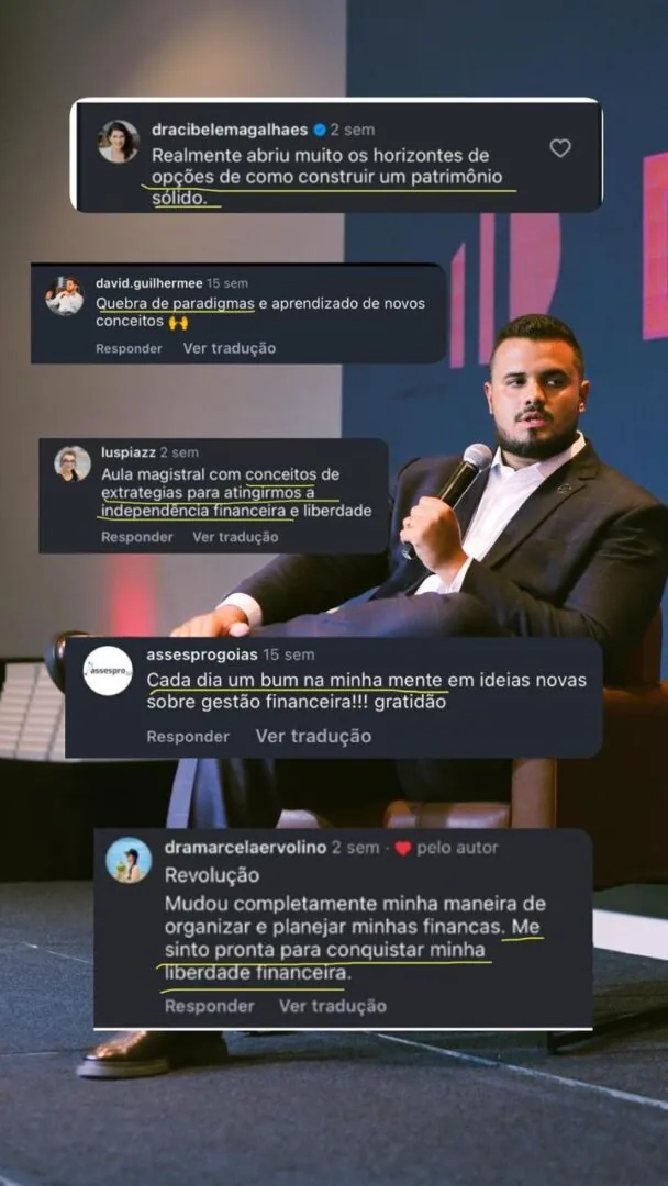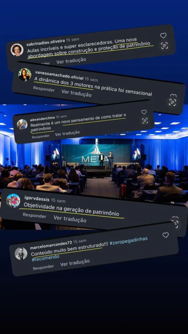 Ao longo do encontro, você entende como alinhar decisões financeiras, organizar o patrimônio de forma inteligente e criar mecanismos de crescimento que não dependem exclusivamente do seu tempo ou esforço contínuo.